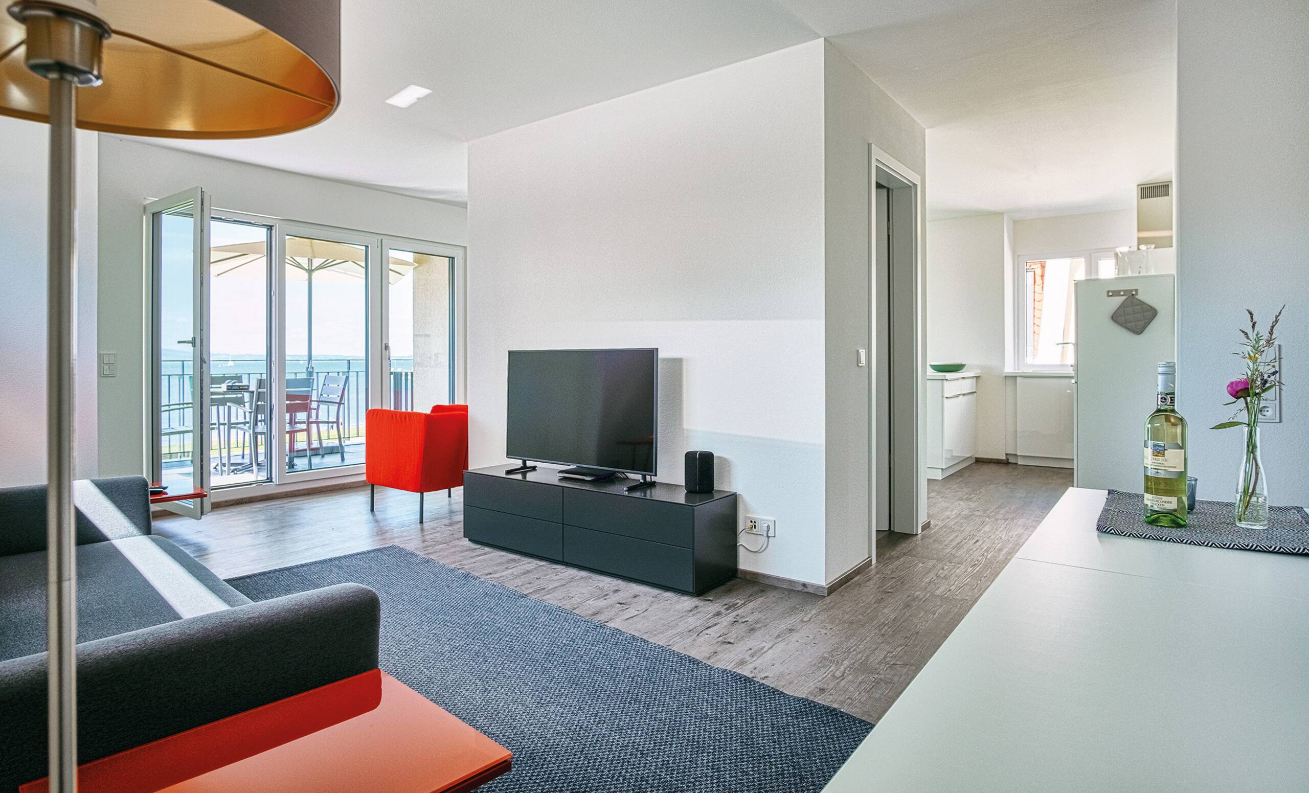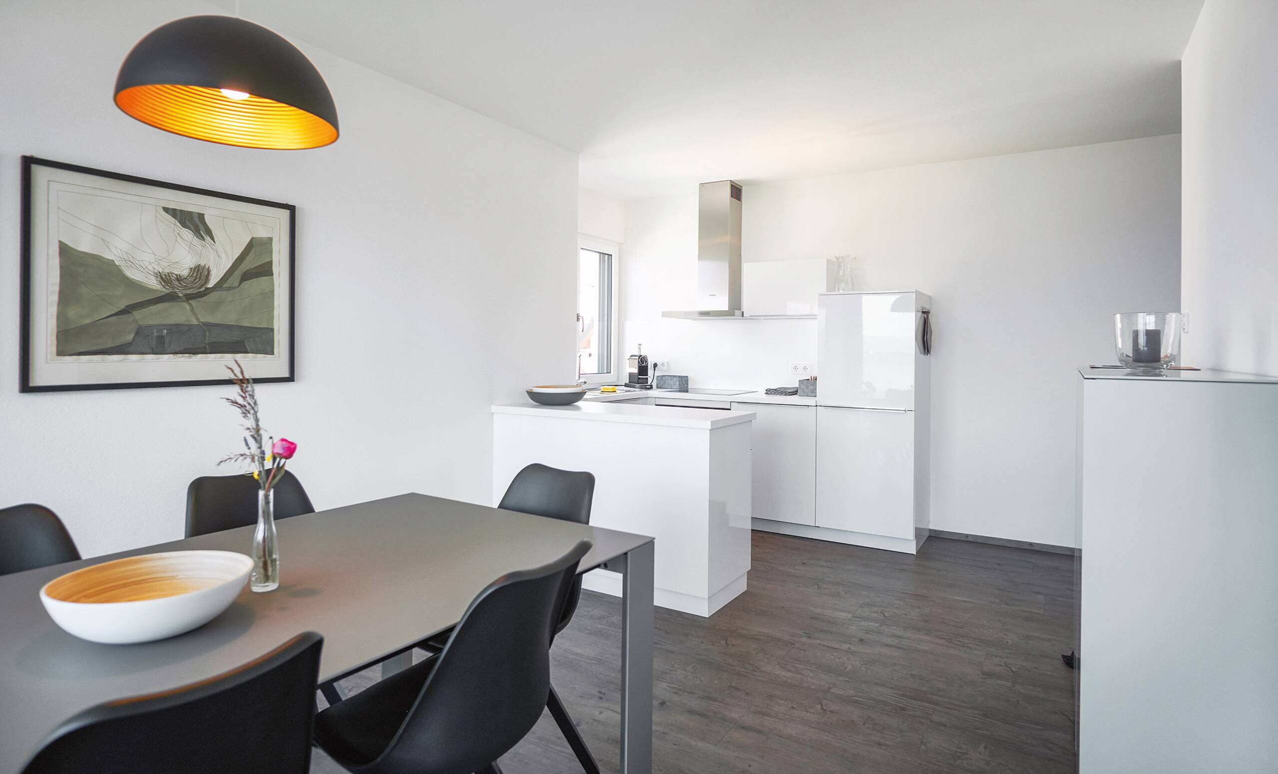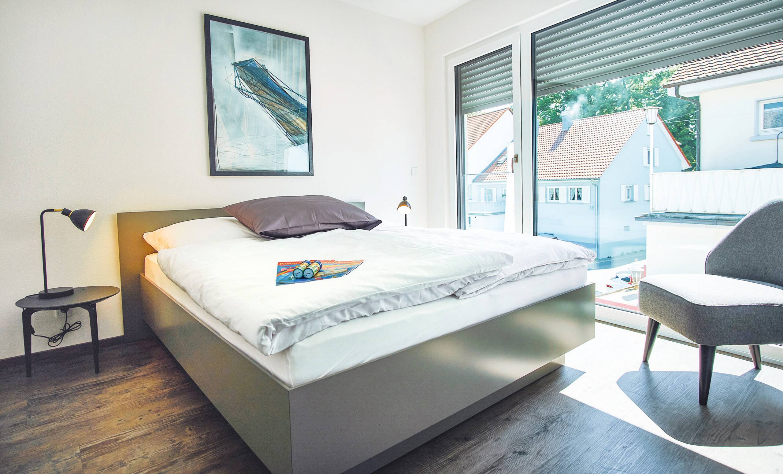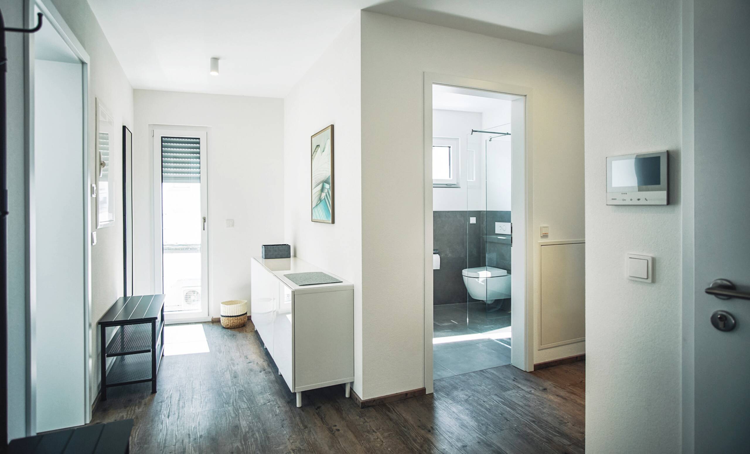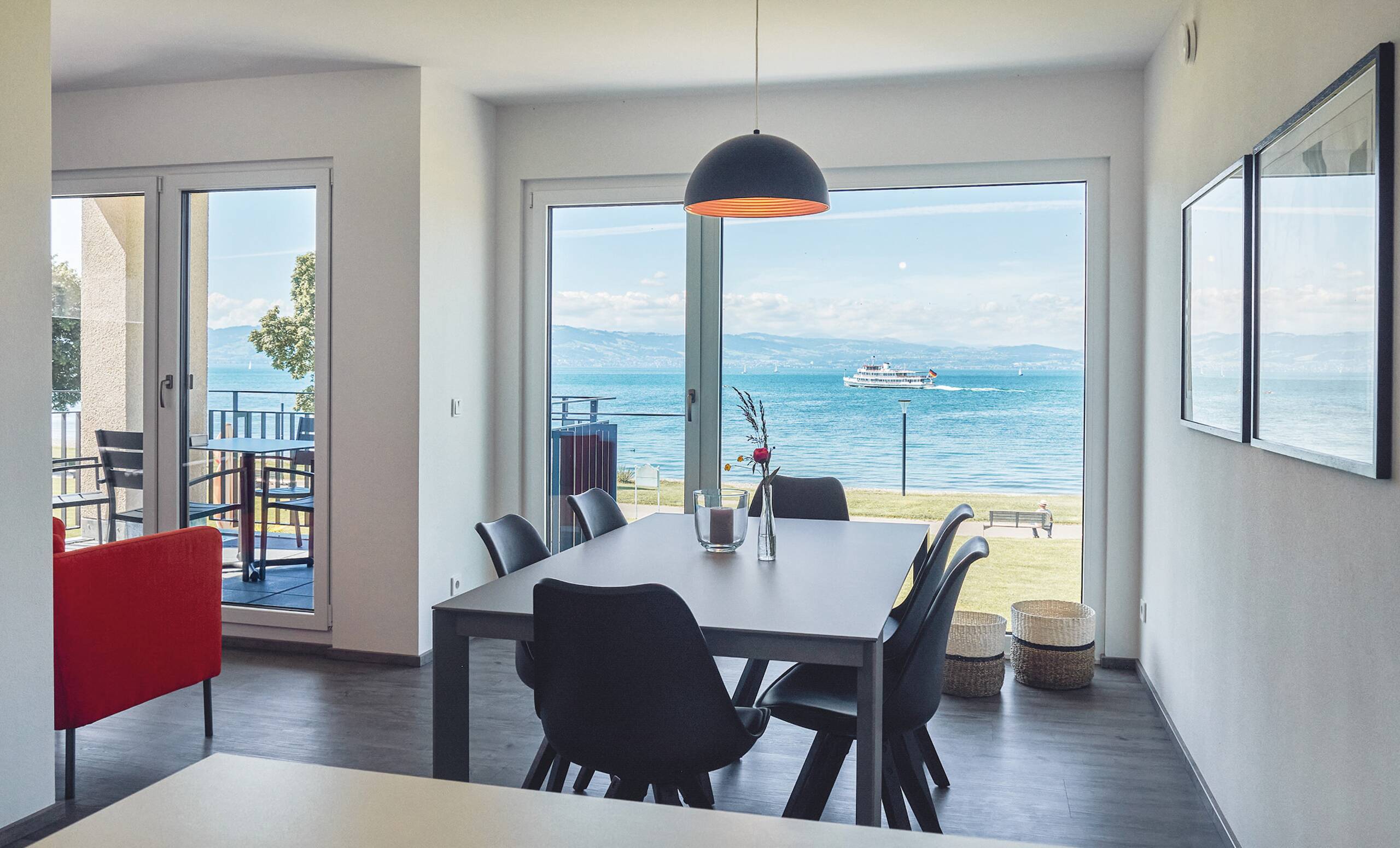Das zweieinhalb-geschossige Gebäude fügt sich in seiner geradlinigen Eleganz harmonisch in die Uferbebauung ein und sorgt für Begeisterung. Insgesamt befinden sich in dem Objektbau mit Wohnkeller vier Wohnungen: Jeweils zwei Ferien- und zwei Mietwohnungen. Die Ausstattung ist von hoher Qualität und lässt keine Wünsche offen. Zudem wurde alles barrierefrei geplant, weshalb auch kein Aufzug fehlen darf. Der Privatinvestor war schnell von Qualität und Service überzeugt. „Besonders die Verlässlichkeit bei Preis und Terminplanung hat mich beeindruckt. Dann die Koordination der einzelnen Gewerke, das war alles top.“